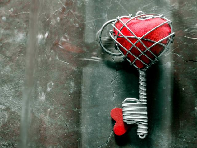 Wallpaper Key with a red heart on a gray table