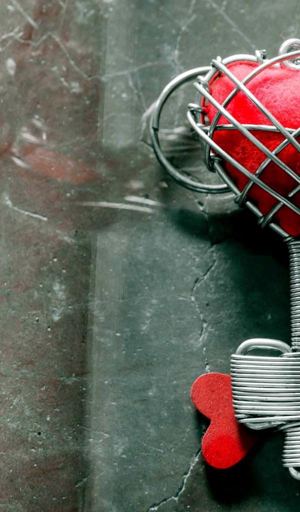 Wallpaper Key with a red heart on a gray table