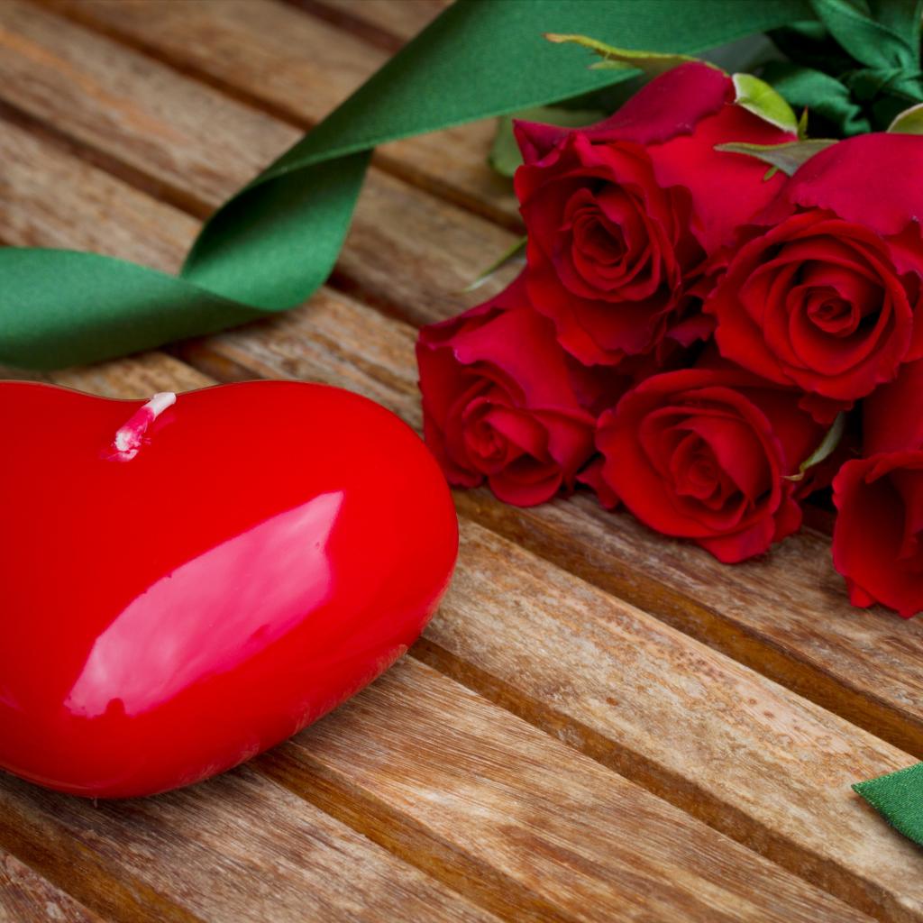 Wallpaper Big heart on a wooden table with a bouquet of red roses