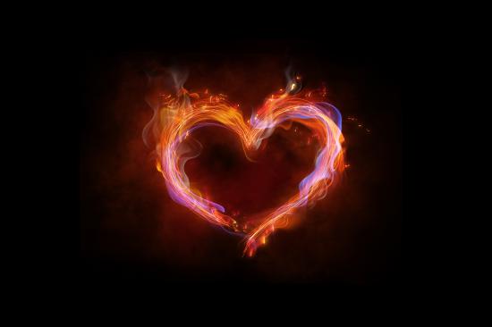 Wallpaper Fiery neon heart on a black background