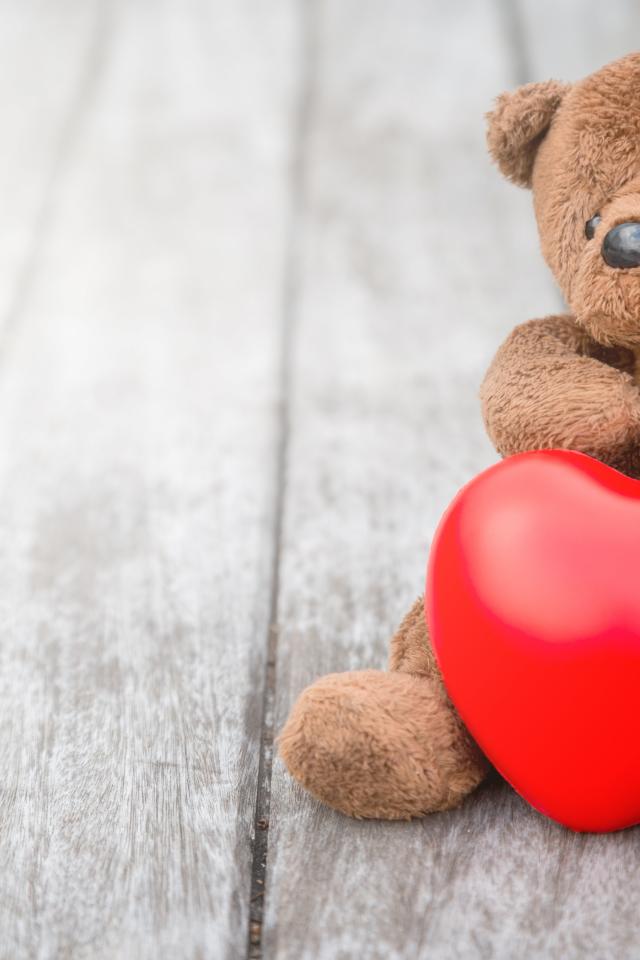 Wallpaper Teddy Bear with a red heart sits on a table