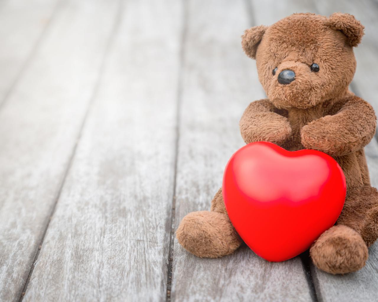 Wallpaper Teddy Bear with a red heart sits on a table