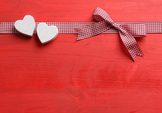 Wallpaper Two hearts with a bow on a red background