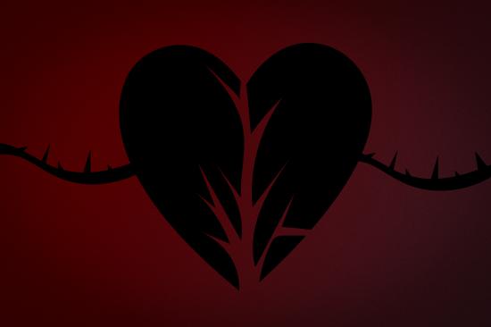 Wallpaper Black torn heart on a red background