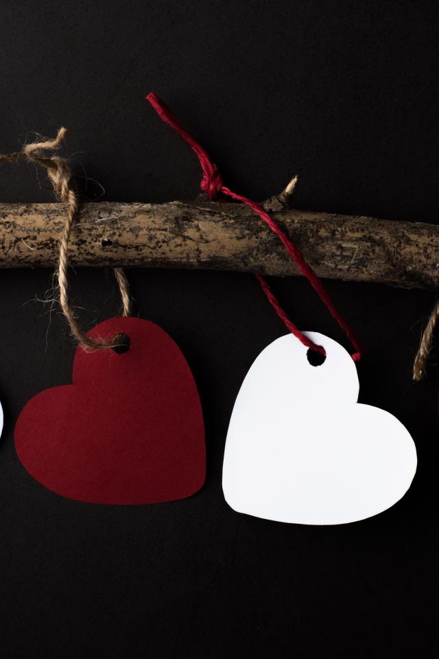 Wallpaper Paper hearts on a branch on a black background