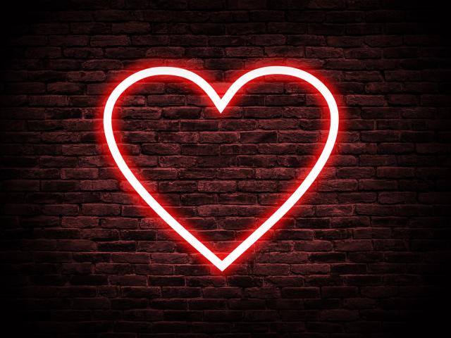 Wallpaper Red neon heart on a brick wall