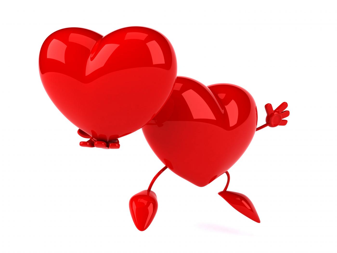 Wallpaper Big red heart holds his copy in his hand on a white background