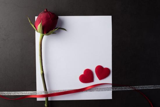 Wallpaper White sheet of paper, rose and ribbons on a gray background