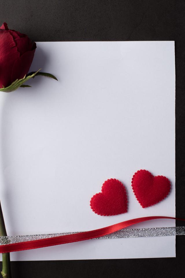 Wallpaper White sheet of paper, rose and ribbons on a gray background