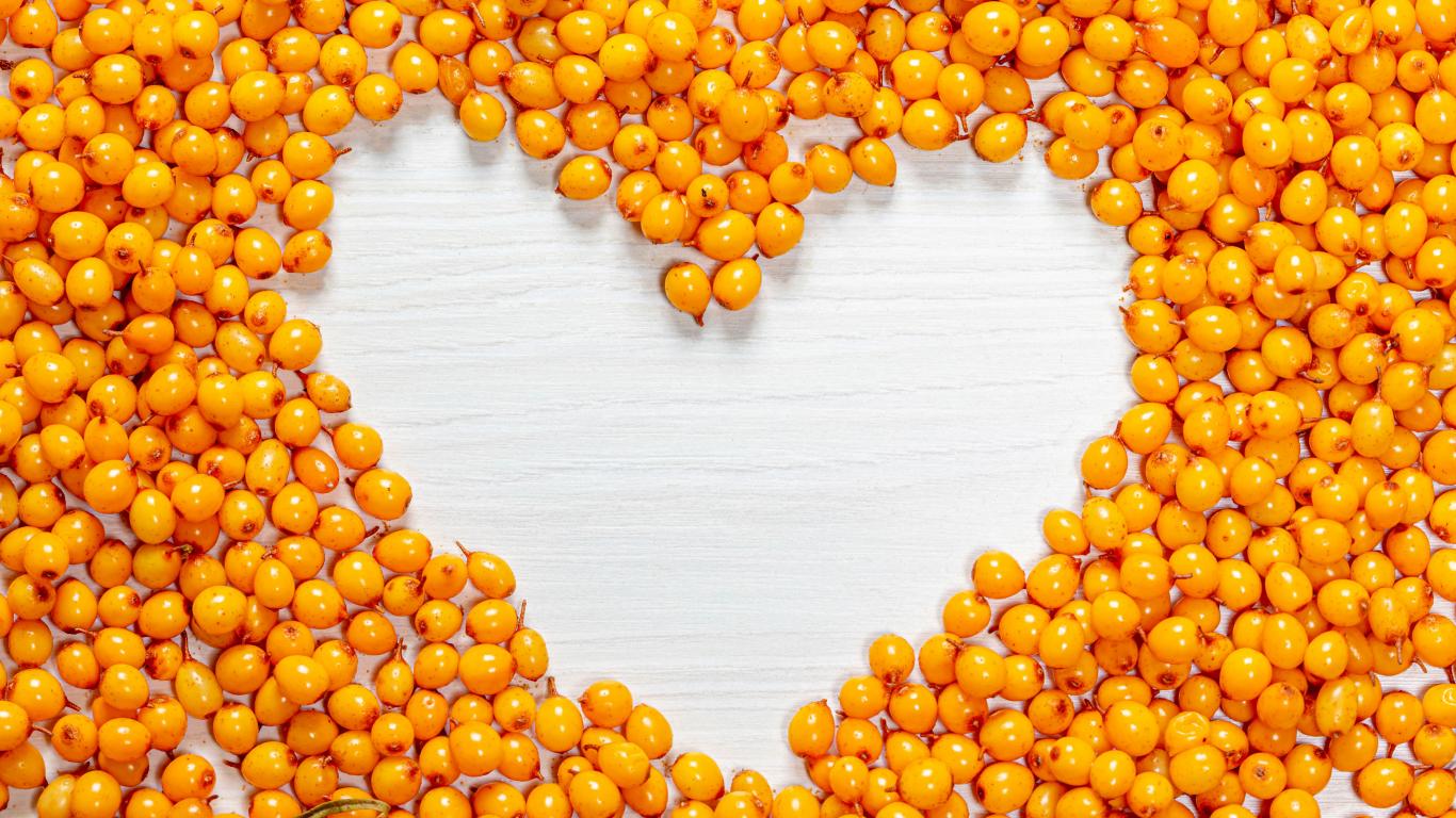 Wallpaper Heart of sea buckthorn berries on a table