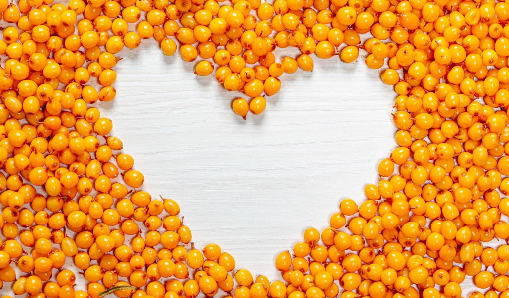 Wallpaper Heart of sea buckthorn berries on a table