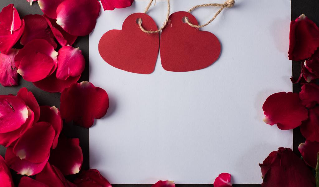 Wallpaper White sheet of paper with hearts and rose petals