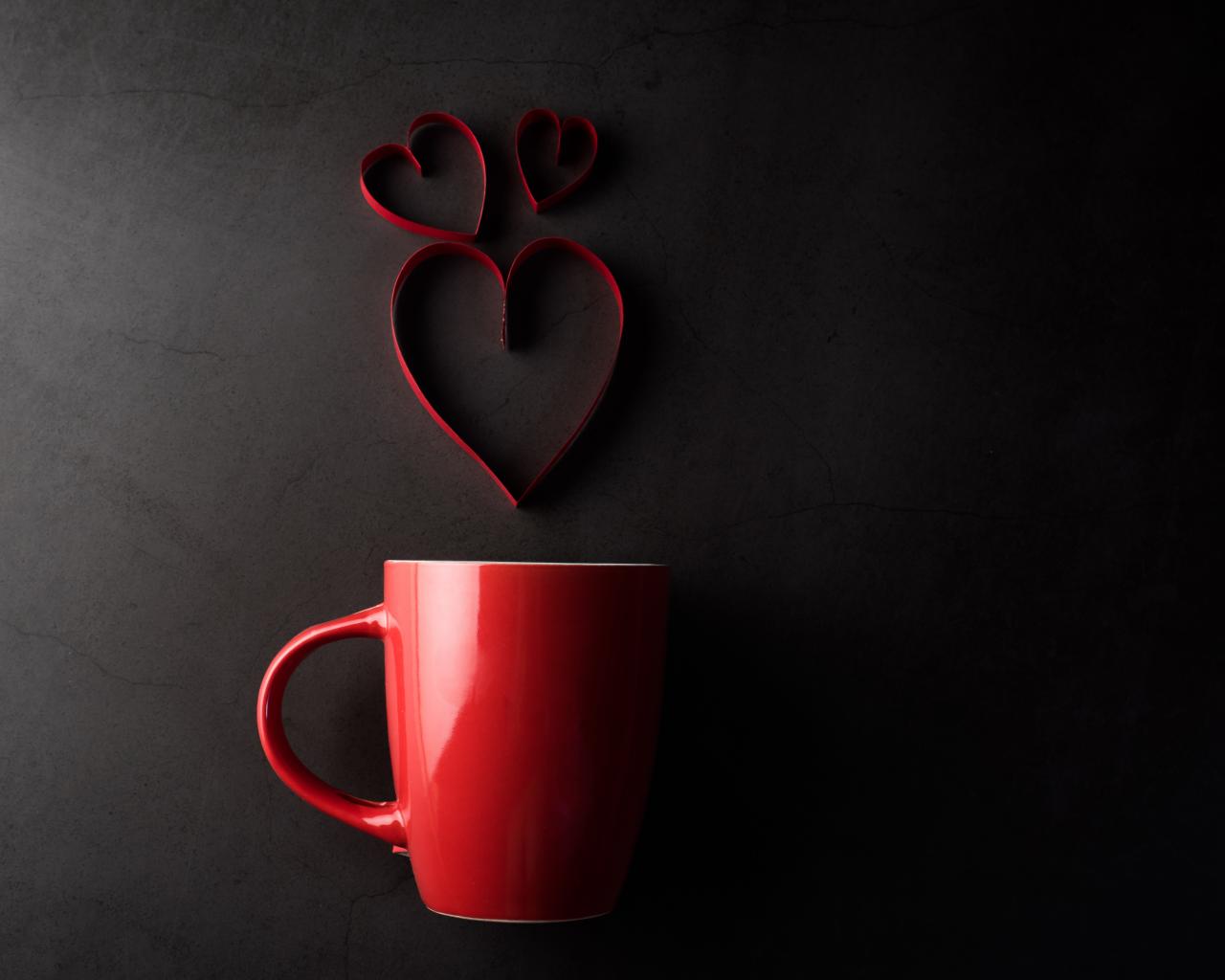 Wallpaper Red cup on a gray background with hearts