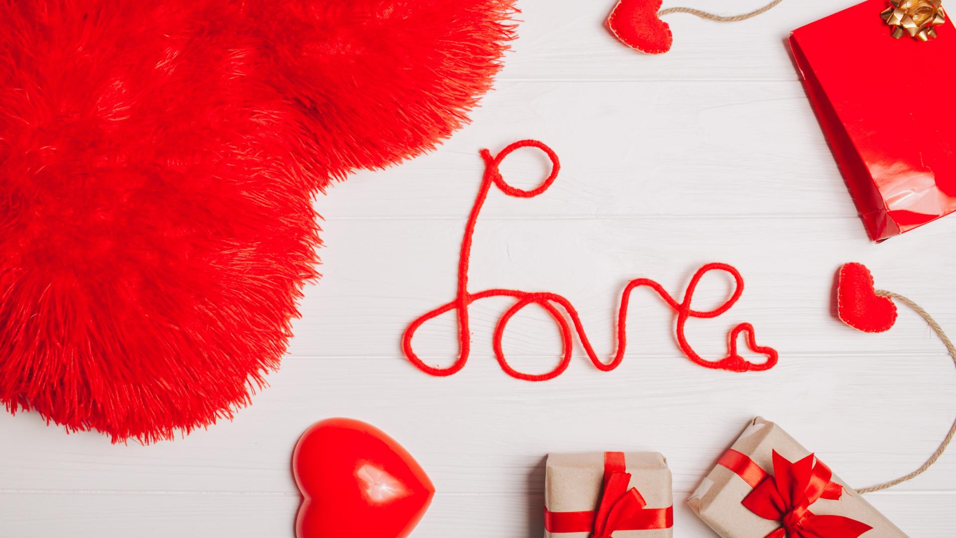 Wallpaper Large heart-shaped pillow on a table with gifts