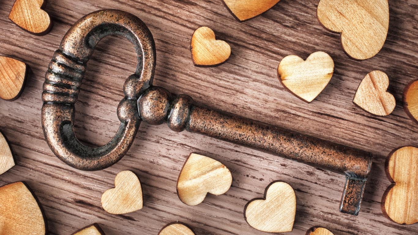 » Wallpaper Large iron key with wooden hearts