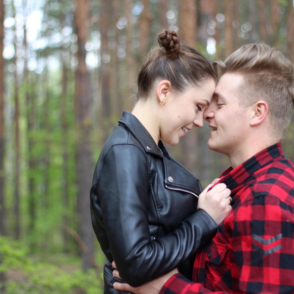 Wallpaper Loving couple stands on a mountain against the background of the moon