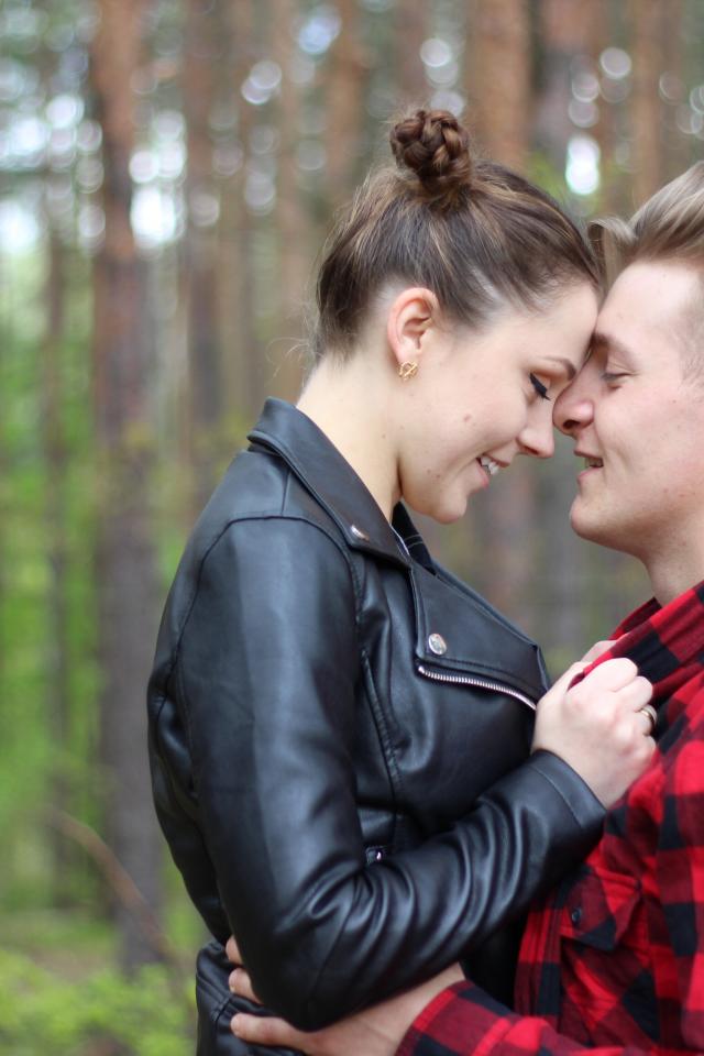 Wallpaper Loving couple stands on a mountain against the background of the moon