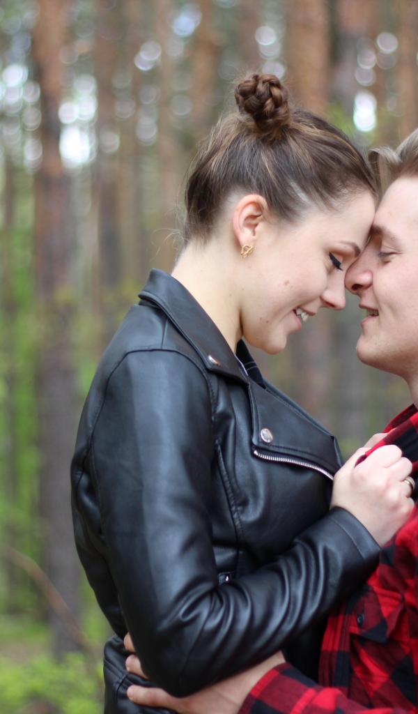 Wallpaper Loving couple stands on a mountain against the background of the moon