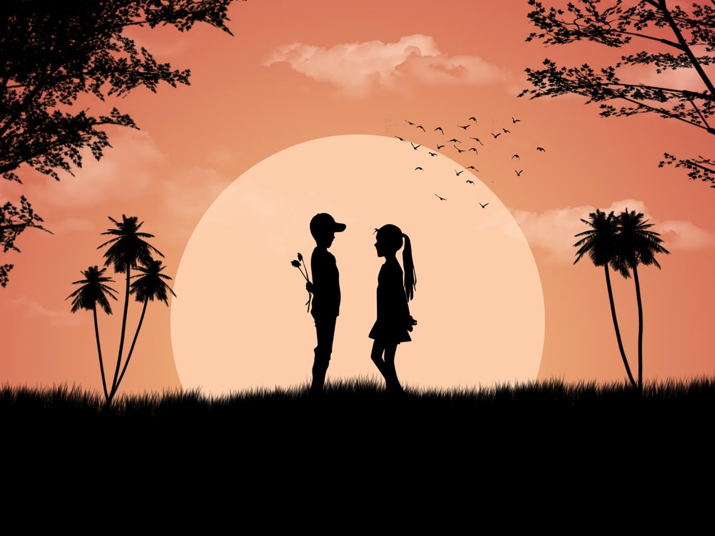 Wallpaper Loving couple on a background of the big moon