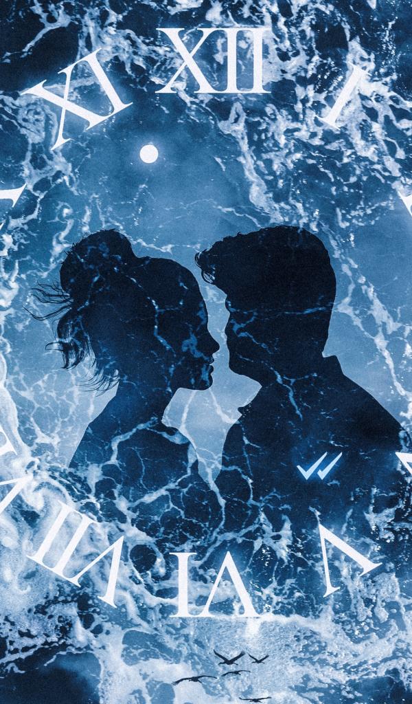 Wallpaper Watches with a couple in love on a background of water