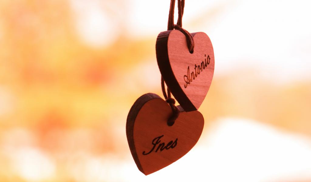 Wallpaper Two wooden hearts on a rope