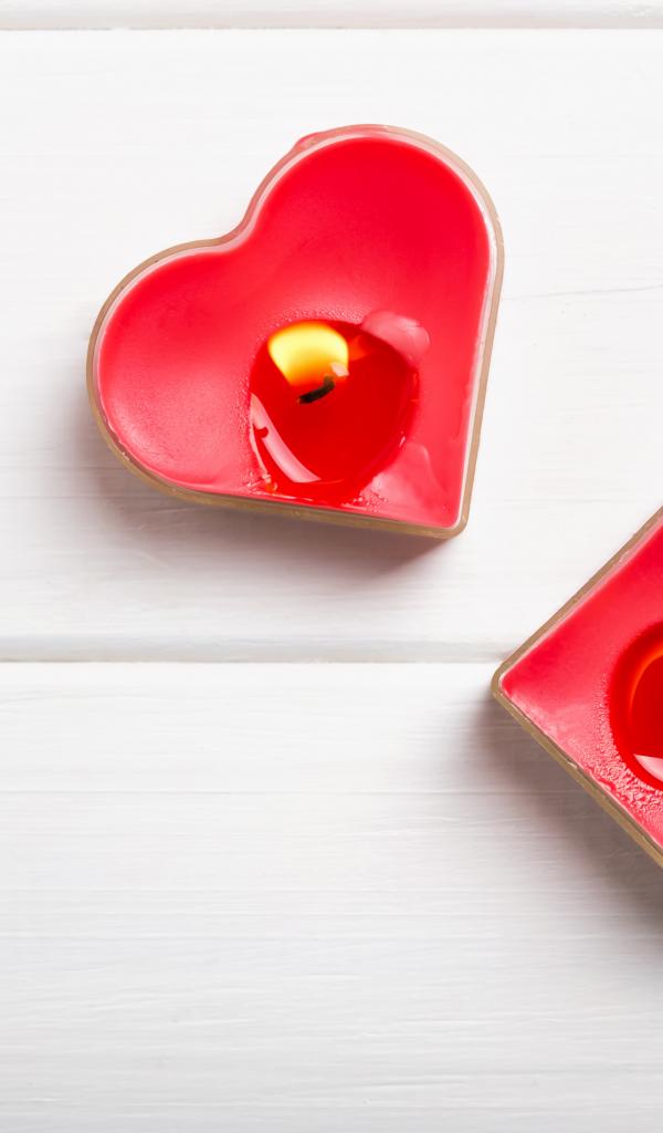 Wallpaper Two burning candles in the shape of a heart on the table