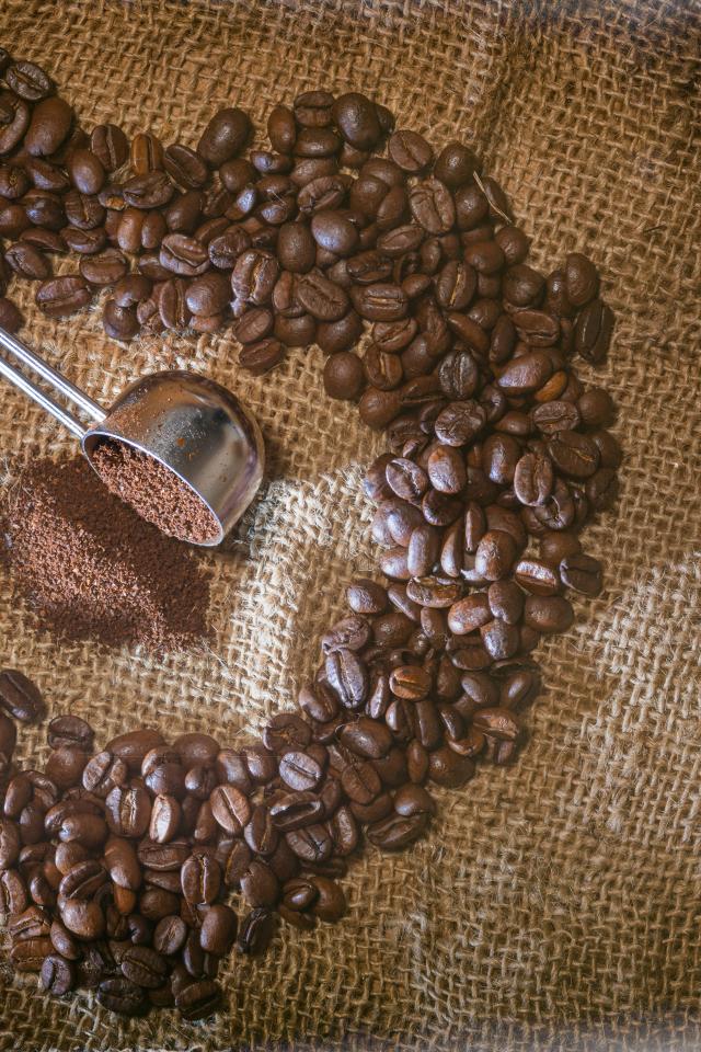 Wallpaper A white cup of coffee in the form of heart stands on coffee beans