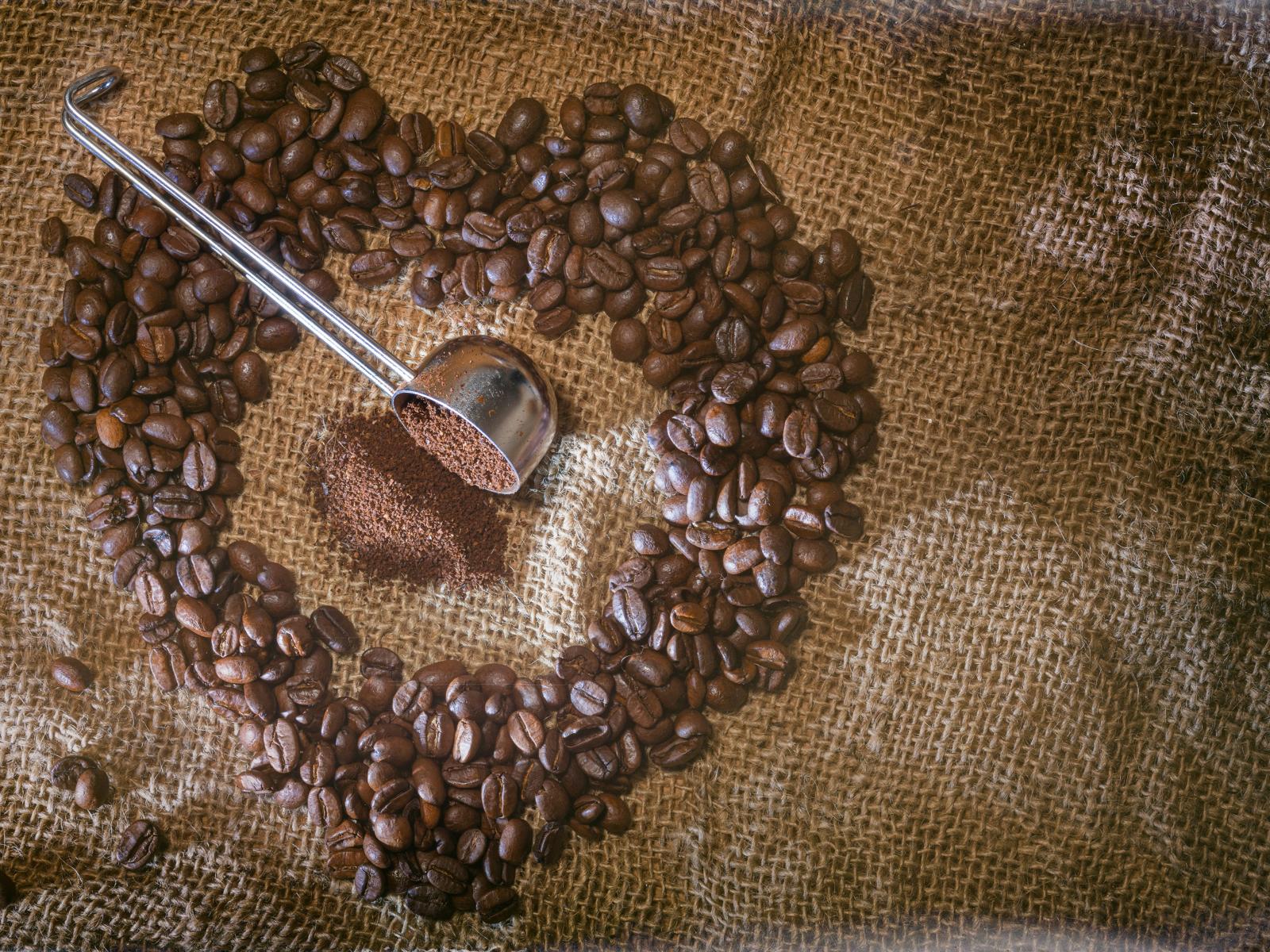 Wallpaper Heart made of coffee beans on a bag