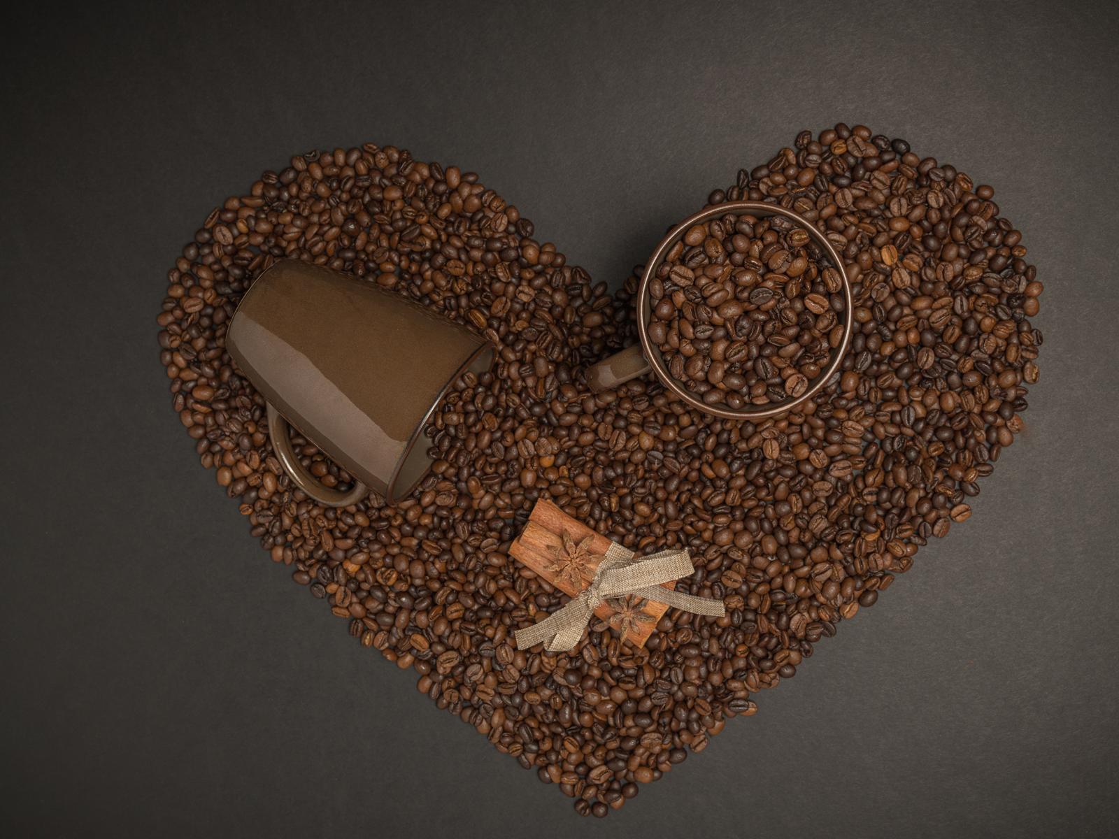 Wallpaper Heart made of coffee beans on a gray background with mugs