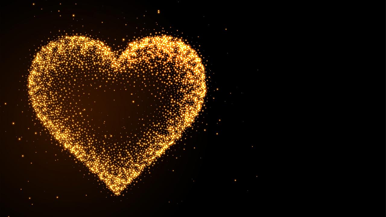 Wallpaper Neon dotted heart on black background