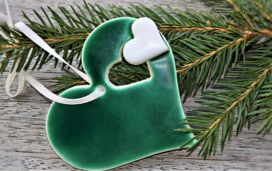Wallpaper Green heart with fir branch on the table