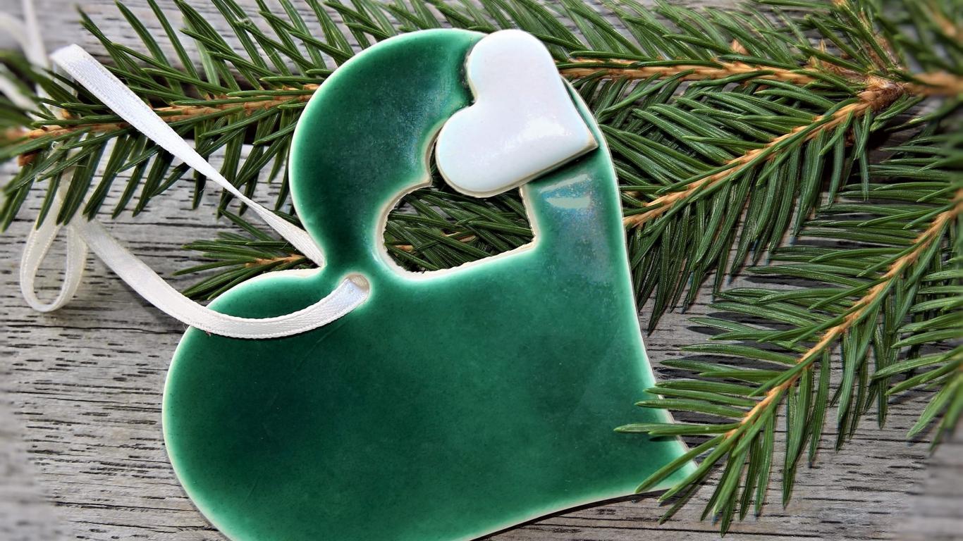 Wallpaper Green heart with fir branch on the table