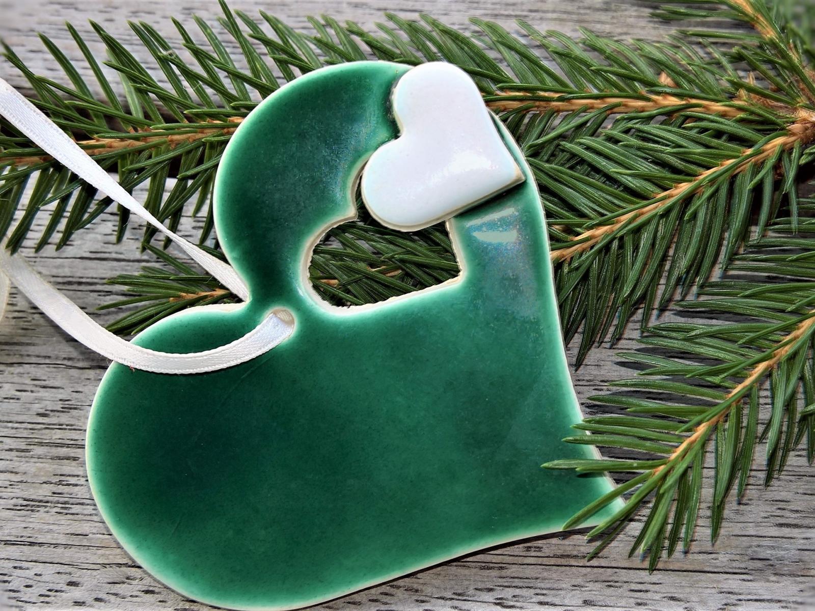 Wallpaper Green heart with fir branch on the table