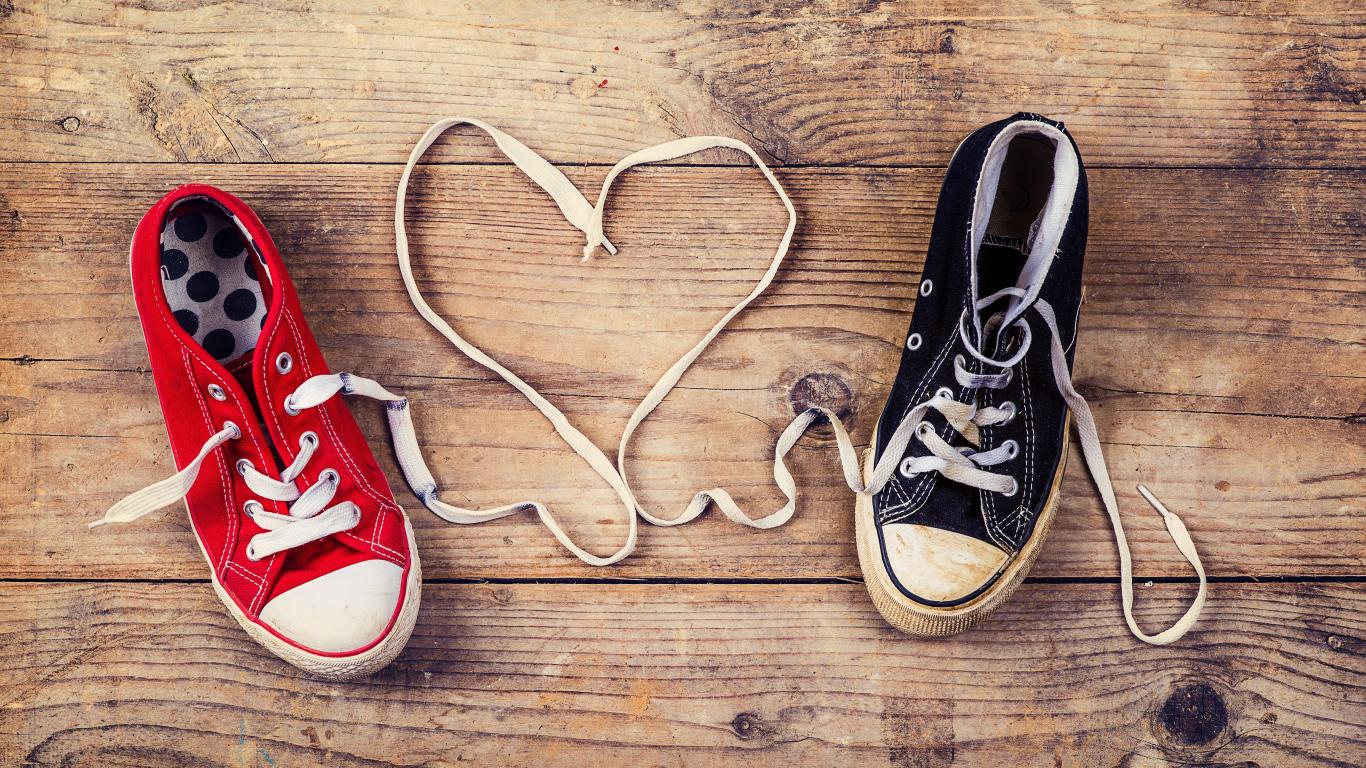Wallpaper Heart made of laces gumshoes on a wooden table