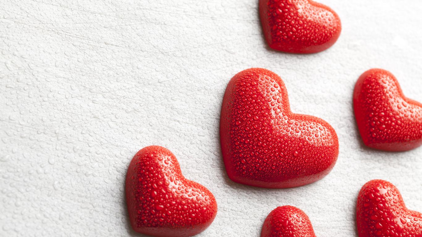 » Wallpaper Wet red hearts on white background