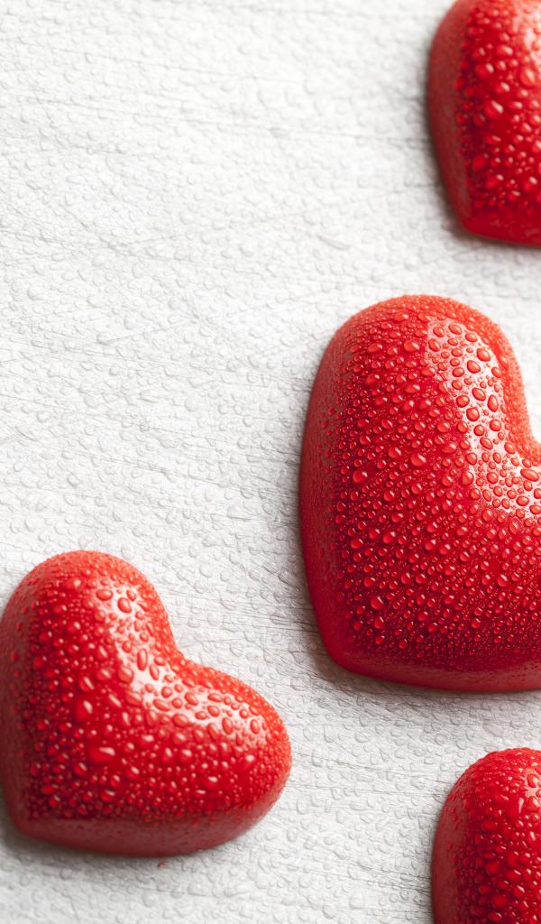 » Wallpaper Wet red hearts on white background