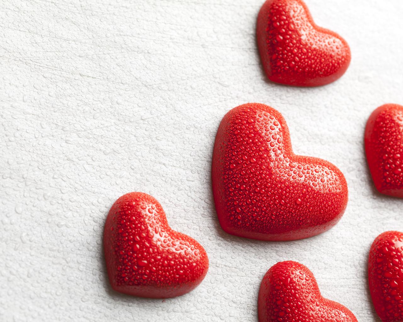 » Wallpaper Wet red hearts on white background
