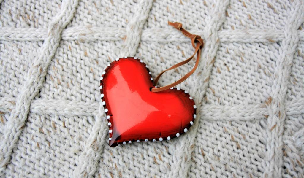 » Wallpaper Red heart lies on a knitted sweater