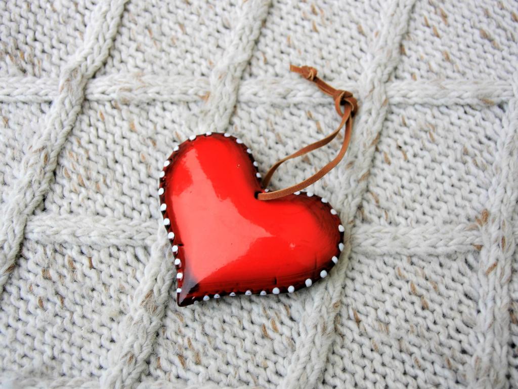 » Wallpaper Red heart lies on a knitted sweater