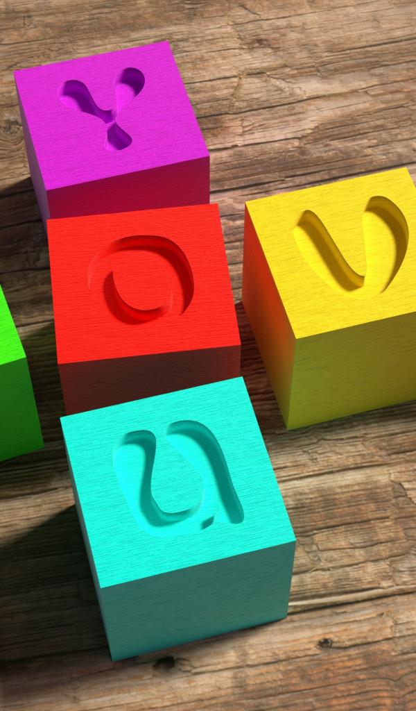 Wallpaper Multicolored cubes with the inscription Love on a wooden table