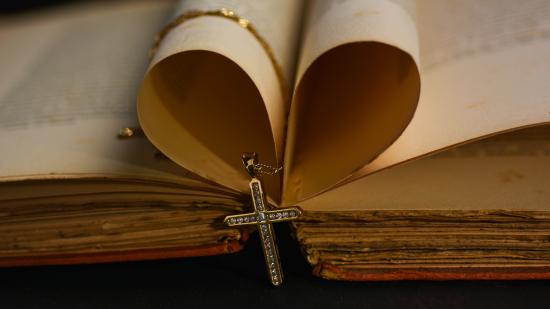 Wallpaper Heart from the pages of a book in a gold cross on a chain