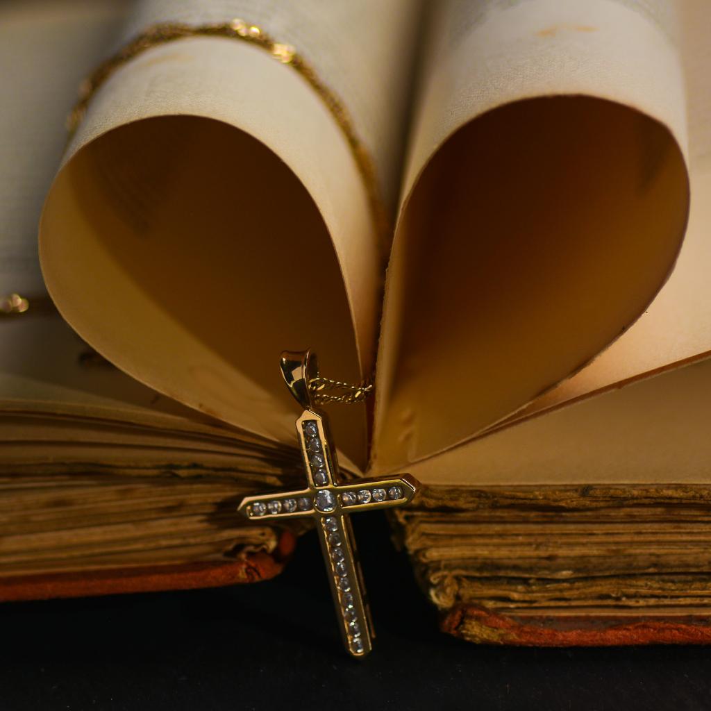 Wallpaper Heart from the pages of a book in a gold cross on a chain