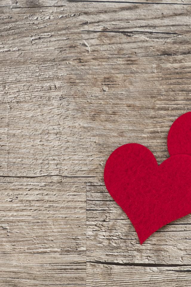 Wallpaper Two red hearts on a table with wooden hearts