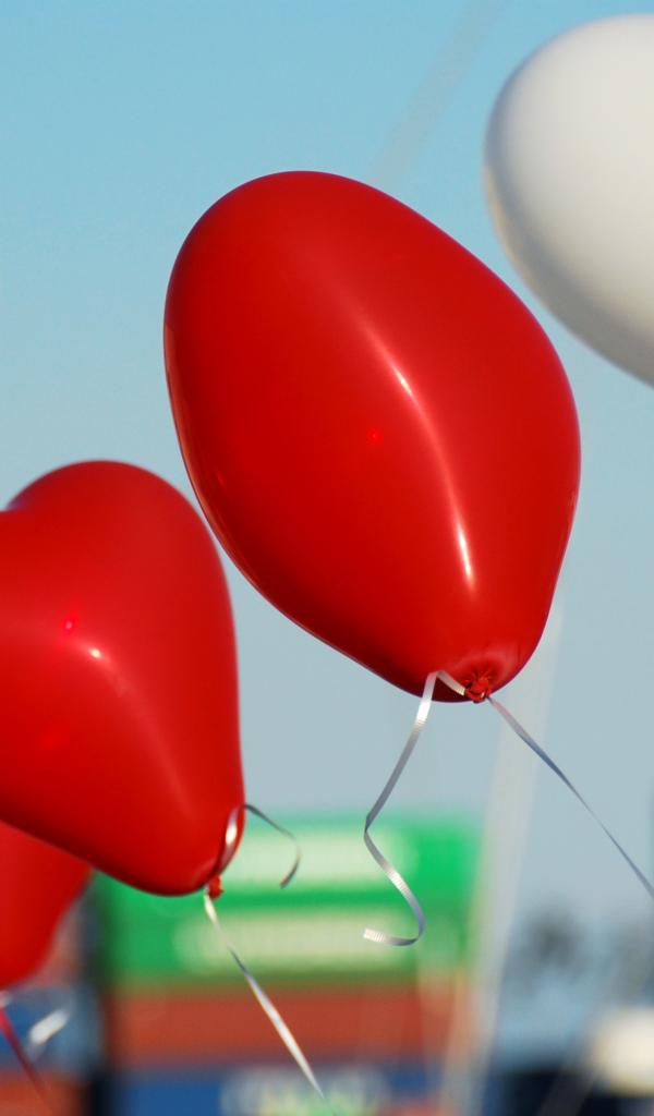 Wallpaper Heart shaped white and red balloons