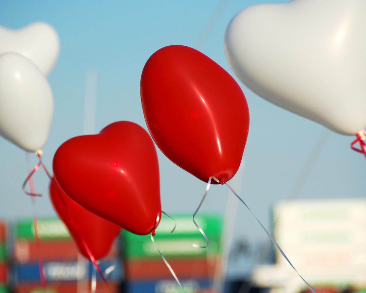 Wallpaper Heart shaped white and red balloons