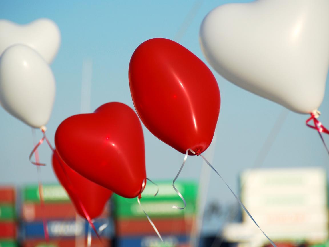 Wallpaper Heart shaped white and red balloons