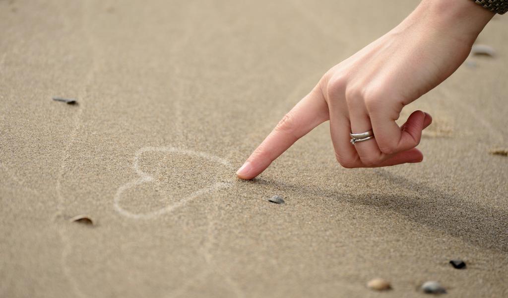 Wallpaper Girl draws a heart on the sand