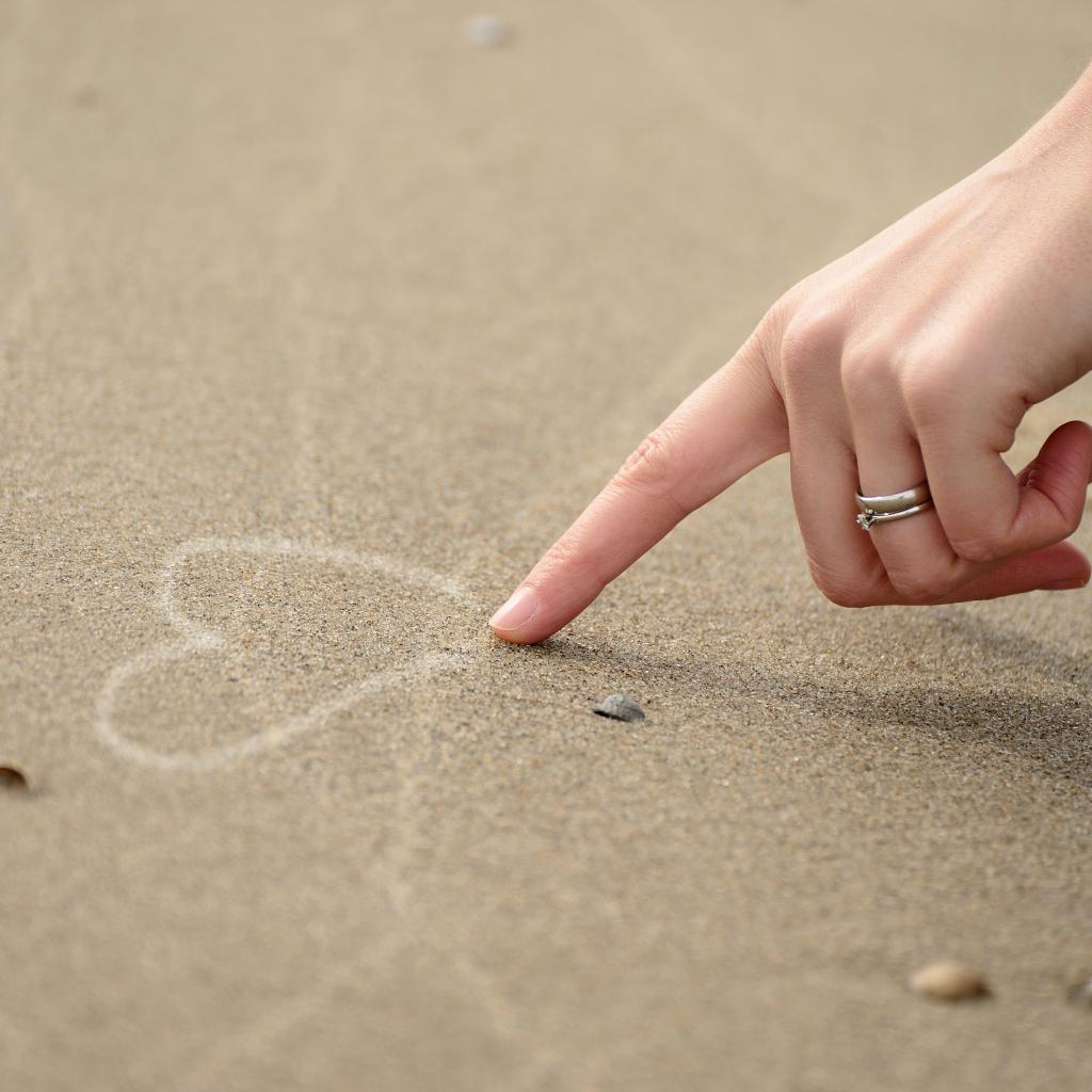 Wallpaper Girl draws a heart on the sand