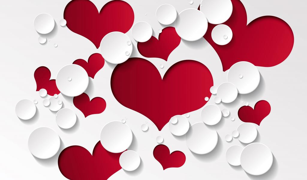 Wallpaper Red hearts and white circles on a white background