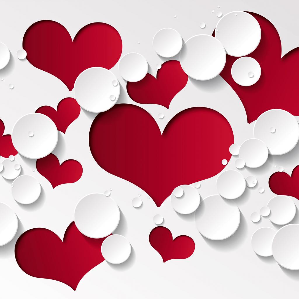 Wallpaper Red hearts and white circles on a white background